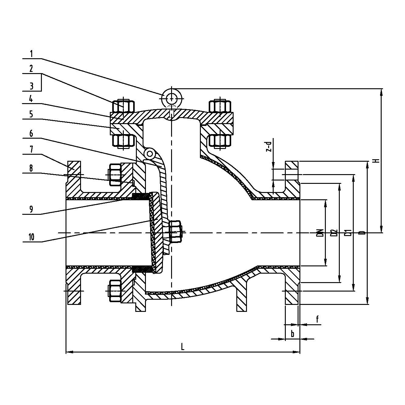 1、該閥門用于輸送渣水混合物介質(zhì)的管路上作為止回裝置。